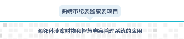 海鄰科公司根據(jù)《中華人民共和國監(jiān)察法》、《涉案財物管理規(guī)定》、《案件檔案管理規(guī)定》等法規(guī)指導意見,結(jié)合新型執(zhí)法業(yè)務實戰(zhàn)需求,為曲靖市紀委監(jiān)察委建設涉案財物管理系統(tǒng)和智慧卷宗管理系統(tǒng)。